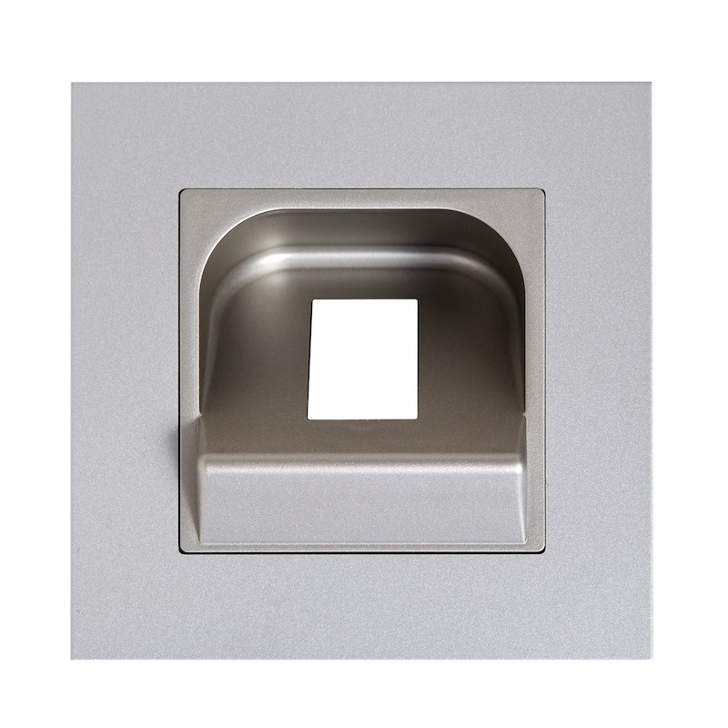 Das ekey ModulS für Siedle Vario Unterputz ist ein Einbaumodul in der Farbe Silber-Metallic, das den schräg positionierten ekey Fingerscanner Unterputz für die Elektrobranche in der Siedle Vario Unterputz Sprechanlage abdeckt. Das ekey ModulS ist für die Verwendung im Heim- und Gewerbebereich vorgesehen. Das ekey ModulS ist für die ortsfeste Montage auf dem Fingerscanner Unterputz für die Elektrobranche in der Siedle Vario Unterputz Sprechanlage und für den Einsatz im ungeschützten Außenbereich vorgesehen. Dieses ekey ModulS ist eine Komponente des ekey Fingerscanners Unterputz für die Elektrobranche und kann nur dort verwendet werden.