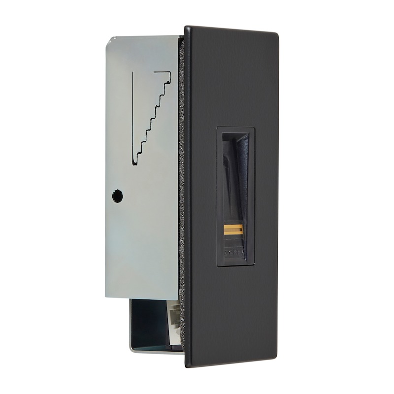Der ekey home Fingerscanner integra mit schwarzem Dekorelement ist ein biometrisches Sensorterminal zur Erfassung von Fingerprints mittels eines RF-Zeilensensors von Authentec. Dieser ekey home Fingerscanner dient der Erkennung von berechtigten Personen und der daraus folgenden Öffnung von Haustüren, Wohnungstüren, Garagentoren usw. Der Fingerscanner ist für die Verwendung im Heim- und Gewerbebereich vorgesehen. Der ekey home Fingerscanner integra ist für die ortsfeste Montage an unbeweglichen Teilen wie Mauerwerk und für den Einsatz im ungeschützten Außenbereich vorgesehen. Für den Betrieb benötigen Sie zusätzlich eine passende Steuereinheit , ein passendes Netzteil und passendes Montagezubehör.