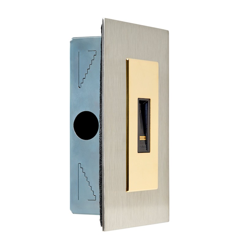 Der ekey home Fingerscanner integra mit dem goldenem Dekorelement und dem Wandmontageset aus Edelstahl ist ein biometrisches Sensorterminal zur Erfassung von Fingerprints mittels eines RF-Zeilensensors von Authentec. Dieser ekey home Fingerscanner dient der Erkennung von berechtigten Personen und der daraus folgenden Öffnung von Haustüren, Wohnungstüren, Garagentoren usw. Der Fingerscanner ist für die Verwendung im Heim- und Gewerbebereich vorgesehen. Der ekey home Fingerscanner integra ist für die ortsfeste Montage an unbeweglichen Teilen wie Mauerwerk und für den Einsatz im ungeschützten Außenbereich vorgesehen. Für den Betrieb benötigen Sie zusätzlich eine passende Steuereinheit, ein passendes Netzteil und passendes Montagezubehör.