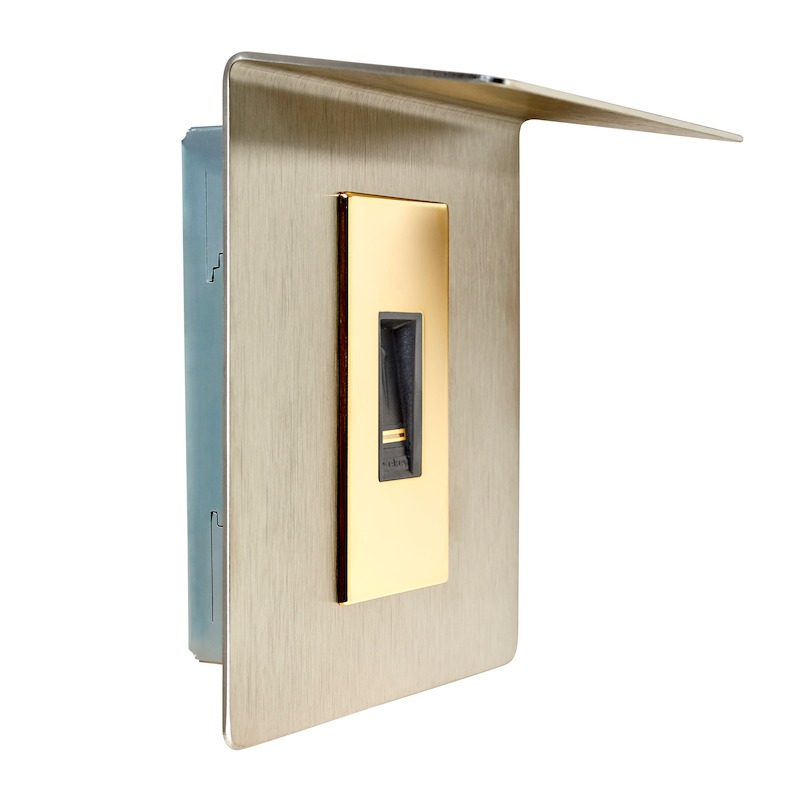 Der ekey home Fingerscanner integra mit dem goldenen Dekorelement und dem Wetterschutz aus Edelstahl ist ein biometrisches Sensorterminal zur Erfassung von Fingerprints mittels eines RF-Zeilensensors von Authentec. Dieser ekey home Fingerscanner dient der Erkennung von berechtigten Personen und der daraus folgenden Öffnung von Haustüren, Wohnungstüren, Garagentoren usw. Der Fingerscanner ist für die Verwendung im Heim- und Gewerbebereich vorgesehen. Der ekey home Fingerscanner integra ist für die ortsfeste Montage an unbeweglichen Teilen wie Mauerwerk und für den Einsatz im ungeschützten Außenbereich vorgesehen. Für den Betrieb benötigen Sie zusätzlich eine passende Steuereinheit, ein passendes Netzteil und passendes Montagezubehör.