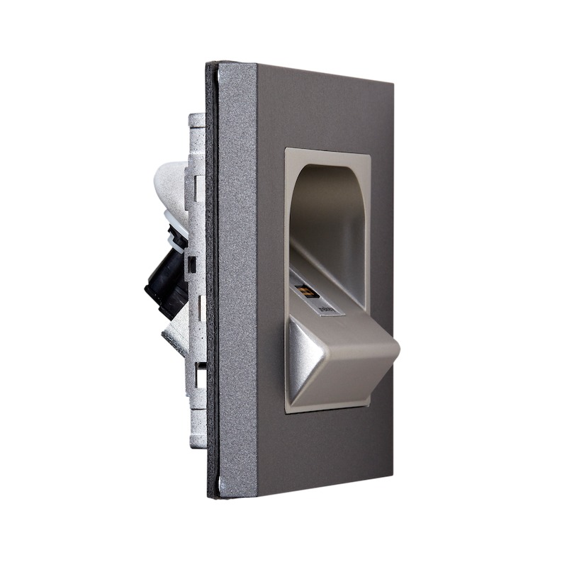 Der ekey home Fingerscanner RFID für die Sprechanlage SIEDLE Vario ist ein biometrisches Sensorterminal zur Erfassung von Fingerprints mittels eines RF-Zeilensensors von Authentec. Zusätzlich ist die Idenjpgikation von RFID-Karten der Type MIFARE DESFire EV1 mit mindestens 1 kByte Speicher möglich. Bis zu 99 Finger und 99 Karten sind speicherbar. Dieser ekey home Fingerscanner dient der Erkennung von berechtigten Personen und der daraus folgenden Öffnung von Gebäudetüren, Firmentüren, Garagentoren usw. Der Fingerscanner ist für die Verwendung im Heim- und Gewerbebereich vorgesehen. Der ekey home Fingerscanner Unterputz RFID ist für die ortsfeste Unterputzmontage an unbeweglichen Teilen wie Mauerwerk im ungeschützten Außenbereich vorgesehen. Für den Betrieb benötigen Sie zusätzlich eine passende Steuereinheit und ein passendes Netzteil.