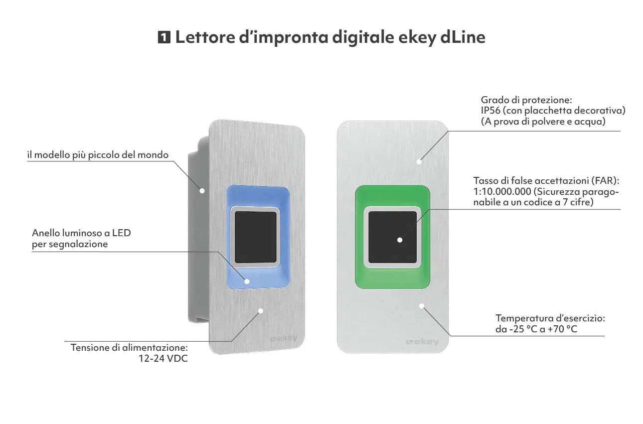 - L’ekey dLine offre la massima comodità e sicurezza, può essere ampliata in modo flessibile e si integra perfettamente nei moderni sistemi di smart home