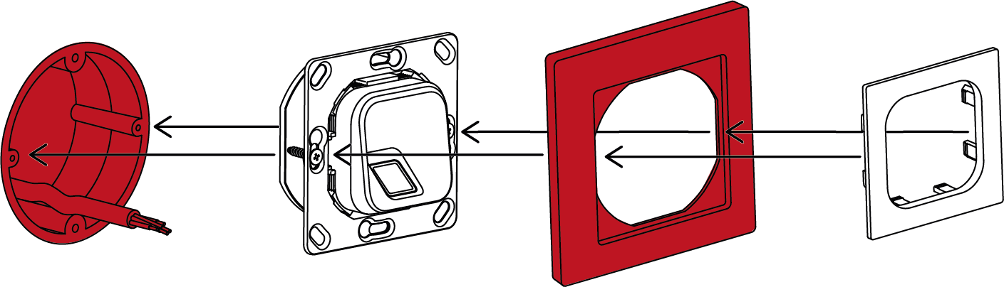 Der ekey xLine Fingerprint wird in der Schalterdose verschraubt. Danach wird der Rahmen des jeweiligen Schalterprogramms aufgesetzt und mit Hilfe des ekey xLine Rahmen-Adapters für 55er-Schalterprogramme am Fingerprint fixiert. Der Rastmechanismus ermöglicht eine rasche Anbringung.